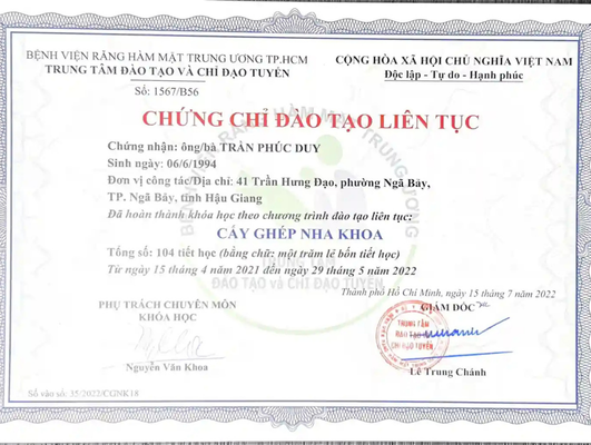 Với hơn 10 năm kinh nghiệm và giúp hàng ngàn bệnh nhân tự tin ăn ngon trở lại, bác sĩ Trần Phúc Duy được khách hàng ưu ái gọi là có ”Bàn tay chữa lành”.
